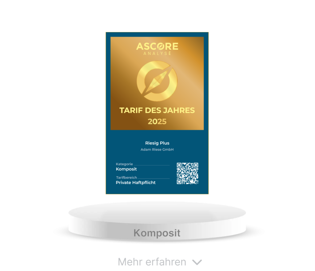 Der Tarif “Riesig” der Adam Riese GmbH in der Kategorie Komposit erhält von ASCORE Analyse die Auszeichnung Tarif des Jahres.