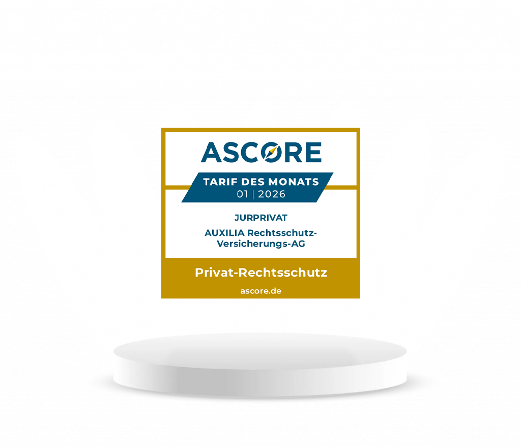 Der Tarif „JURPRIVAT“ der AUXILIA Rechtsschutz-Versicherungs-AG in der Kategorie Privat-Rechtsschutz erhält von ASCORE Analyse die Auszeichnung Tarif des Monats.