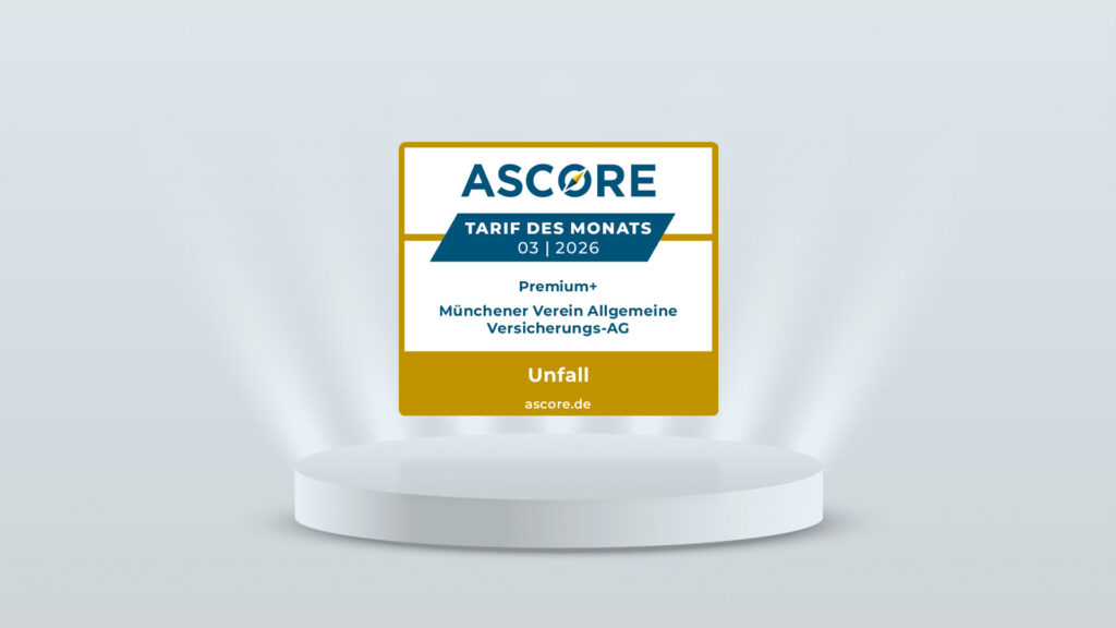 Der Tarif „Premium+“ der Münchener Verein Allgemeine Versicherungs-AG in der Kategorie Unfall erhält von ASCORE Analyse die Auszeichnung Tarif des Monats.